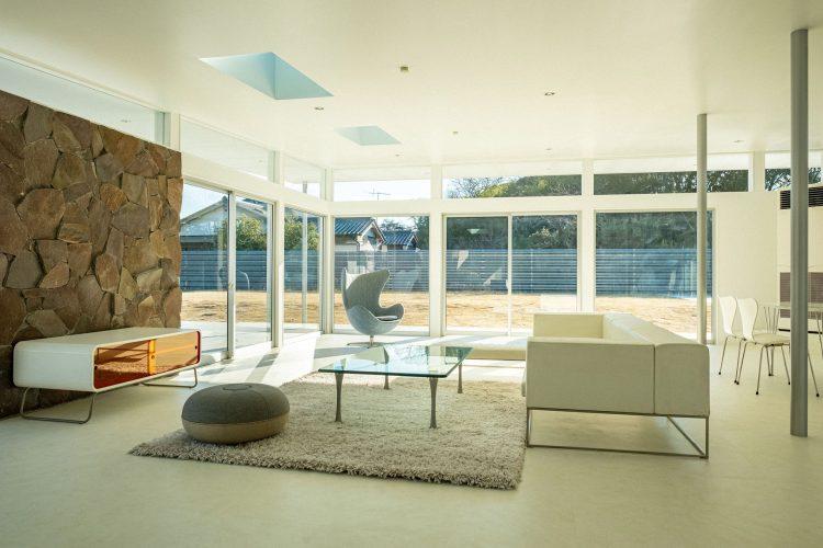 シンプルながらユニークなデザインの家具が揃うメインの空間と、カラーが豊富に取り入れられたポップな印象の空間に分かれています。余白を設けて配置されたインテリアからも、ミッドセンチュリースタイルの余裕が感じられます。広々とした敷地内にあるガレージでは、車を乗り入れたり、アプローチを走る様子を撮影することも可能です。車で7分で海にも行けるので、九十九里浜でのロケーション撮影との組み合わせもおすすめです。
